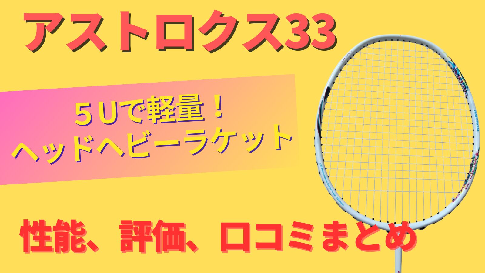 『アストロクス33』5U軽量ヘッドヘビーラケット!性能、評価、口コミまとめ 2026.02.18 中級者用ラケット marukogeokoge バドラケットレビューブログ 【2026年最新】安くて失敗しない!コスパ最強のバドミントンラケット5選【初心者、中級者向け】 2026.01.28 中級者用ラケット marukogeokoge バドラケットレビューブログ ヨネックスのグリップの種類と特徴まとめ!プレイに合った選び方解説!【2026 年最新】 2026.01.12 ラケット基礎知識 marukogeokoge バドラケットレビューブログ 松友美佐紀選手のメインラケットがアクロスピード2へ変更!ラケットの特徴や変更理由を解説! 2026.01.06 上級者用ラケット marukogeokoge バドラケットレビューブログ アストロクス100ツアーVA!従来のアストロクス100ツアーと違いはある?徹底比較! 2025.12.28 上級者用ラケット marukogeokoge バドラケットレビューブログ 折れたバドミントンラケットの処理方法5選!捨てる以外の選択肢も解説 2025.12.22 ラケット基礎知識 marukogeokoge バドラケットレビューブログ 『アクロスピード3』5U軽量ダブルス用ラケット!性能、評価、口コミまとめ 2025.12.16 中級者用ラケット marukogeokoge バドラケットレビューブログ 桃田賢斗選手のメインラケット『アストロクス88Dプロ』!ラケットの特徴や使用理由を解説! 2025.12.04 ラケット基礎知識 marukogeokoge バドラケットレビューブログ 志田千陽選手のメインラケット『ナノフレア800プロ』!ラケットの特徴や使用理由を解説! 2025.11.30 上級者用ラケット marukogeokoge バドラケットレビューブログ 【2025年最新】ヨネックスのバドミントンガットの種類と特徴まとめ!プレイに合ったガットの選び方解説! 2025.11.27 ラケット基礎知識 marukogeokoge バドラケットレビューブログ もっと見る