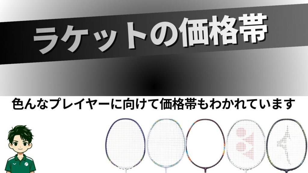 バドミントンラケットの価格帯はプレイヤーのレベルに応じて3つの範囲に分かれています