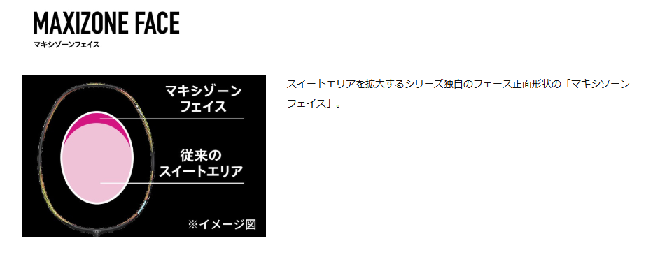 マキシゾーンフェイスはラケットのスイートエリアを広くする技術です!
