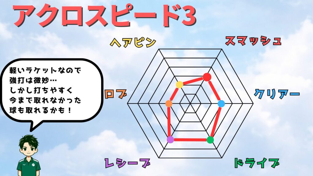 『アクロスピード3』5U軽量ダブルス用ラケット!性能、評価、口コミまとめ