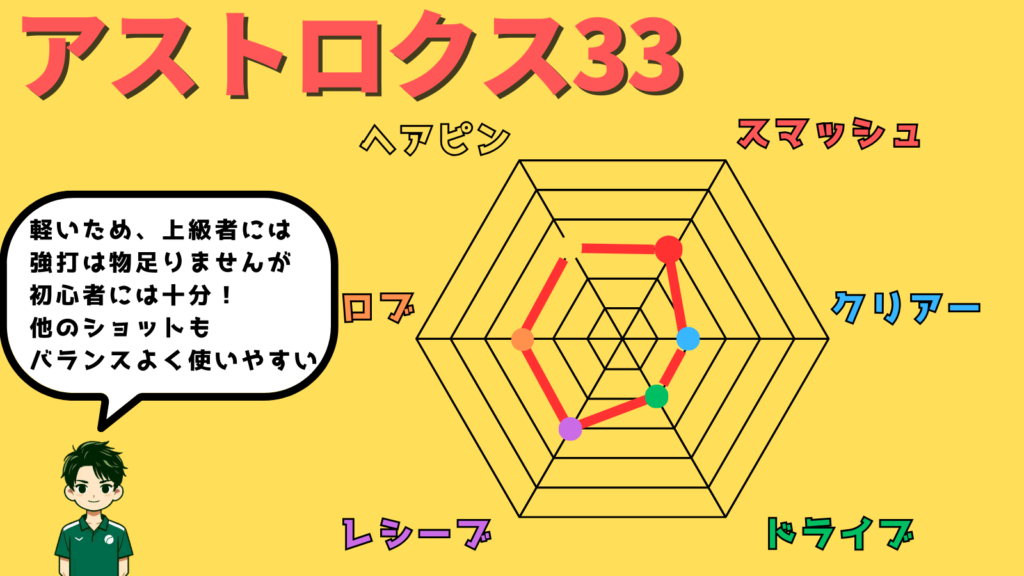 YONEX公式ではアストロクス33は初心者、中級者がメインターゲットとのこと