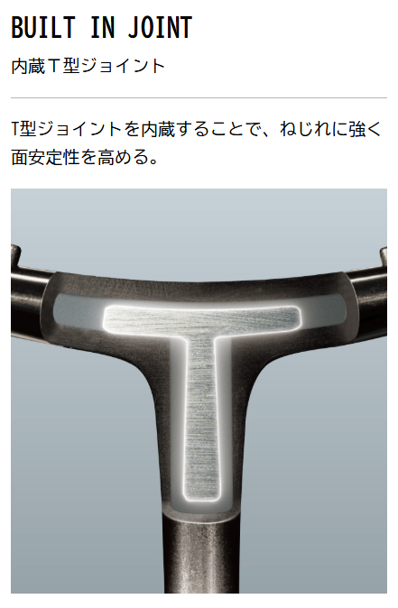 エナジーブーストキャッププラスはシャフトがしなりやすく捻じれにくいためラケットがぶれにくくなり、結果的にコントロール性が良くなる技術です