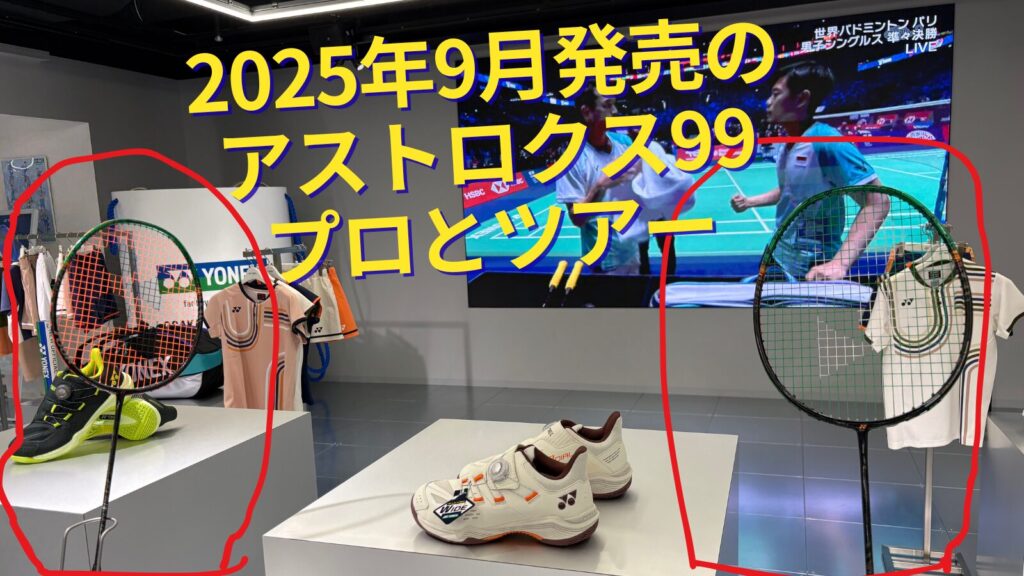 入口すぐの正面に飾ってある新発売のアストロクス99プロ とアストロクス99ツアーを借りてみました